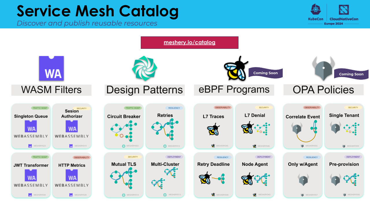Explore the extensive service mesh pattern library at https://meshery.io/catalog to discover a treasure trove of reusable solutions for your cloud native network.